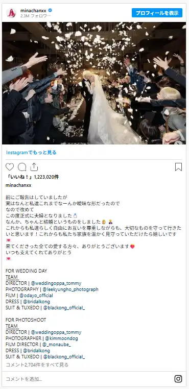 2024年7月、韓国のラッパーASH ISLANDさんとの結婚と妊娠を発表。同年11月には第1子となる女児を出産。