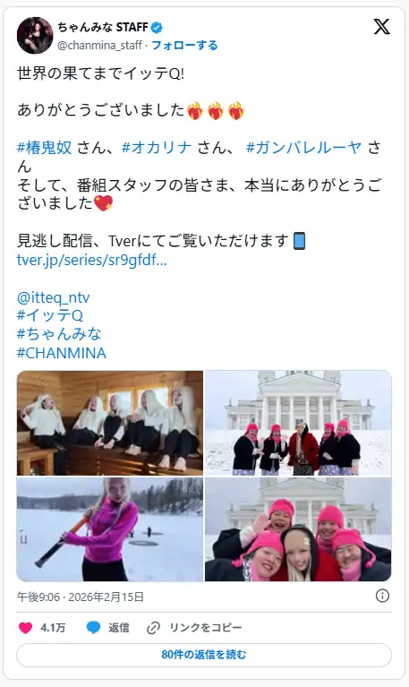 引用:https://twitter.com/chanmina_staff/status/2023005951465488826