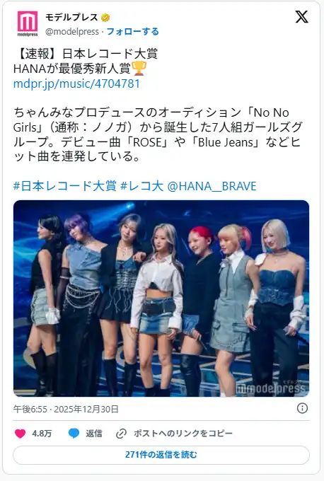 引用:https://twitter.com/modelpress/status/2005940764795367568