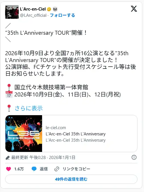 L’Arc〜en〜Cielは時代を超えて更新され続ける唯一無二のバンドとなっております。