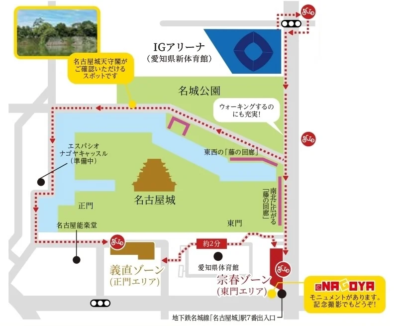 名古屋城駅 → IGアリーナ:徒歩約11分