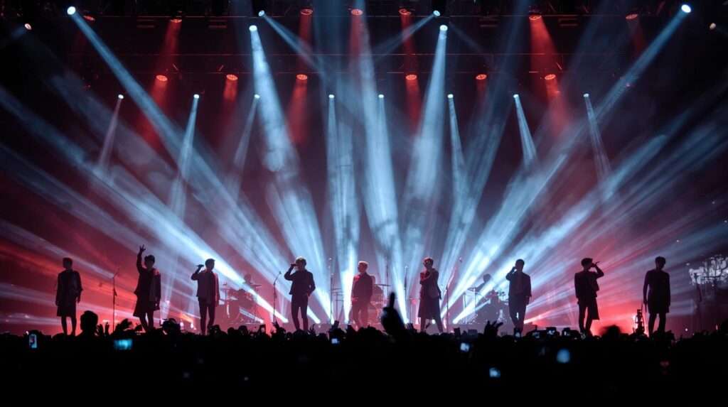 巨大セットや空中ギミック、火花やレーザーを駆使した演出は観客を圧倒し、ライブをスペクタクルへと引き上げます。