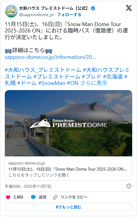 Snow Man Dome Tour 2025-2026 ONに関するnoteはこちら⏬️