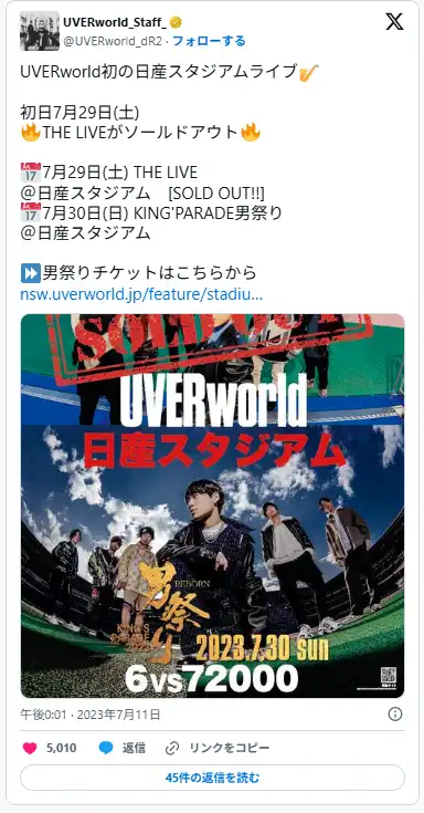 UVERworldの男祭りは、それは、男性ファンが一堂に会し、音楽を通じて本能的に一体感を感じる特別な空間です。